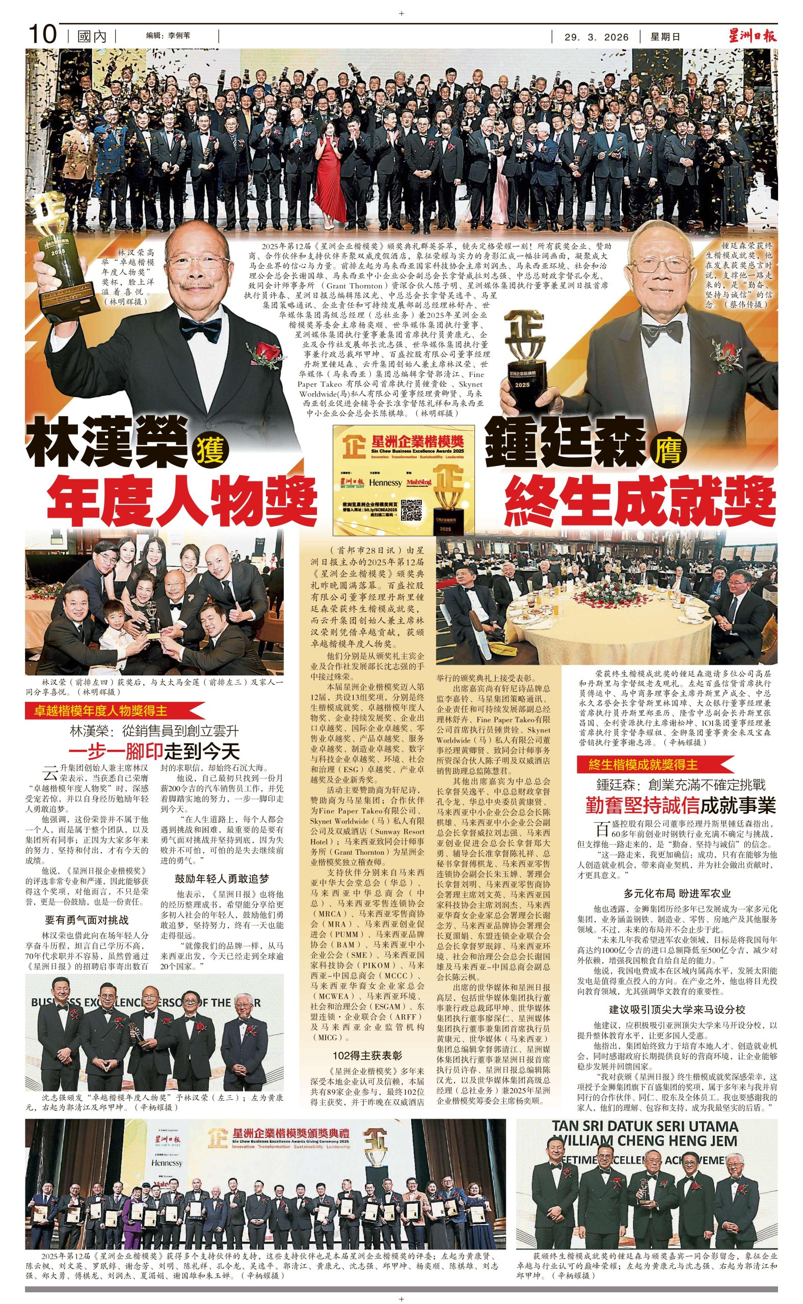 The award was presented by YB Steven Sim Chee Keong, Minister of Entrepreneur Development and Cooperatives, Malaysia; Khoo Kar Khoon, Executive Director & CEO (Malaysia) of Media Chinese International Limited; and Yeoh Yee Soon, Group Senior General Manager (HQ Business) of Media Chinese International Limited and Chairman of the Organizing Committee of the awards.